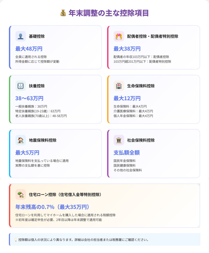 全員に適用される控除で、所得金額に応じて最大48万円が控除されます。